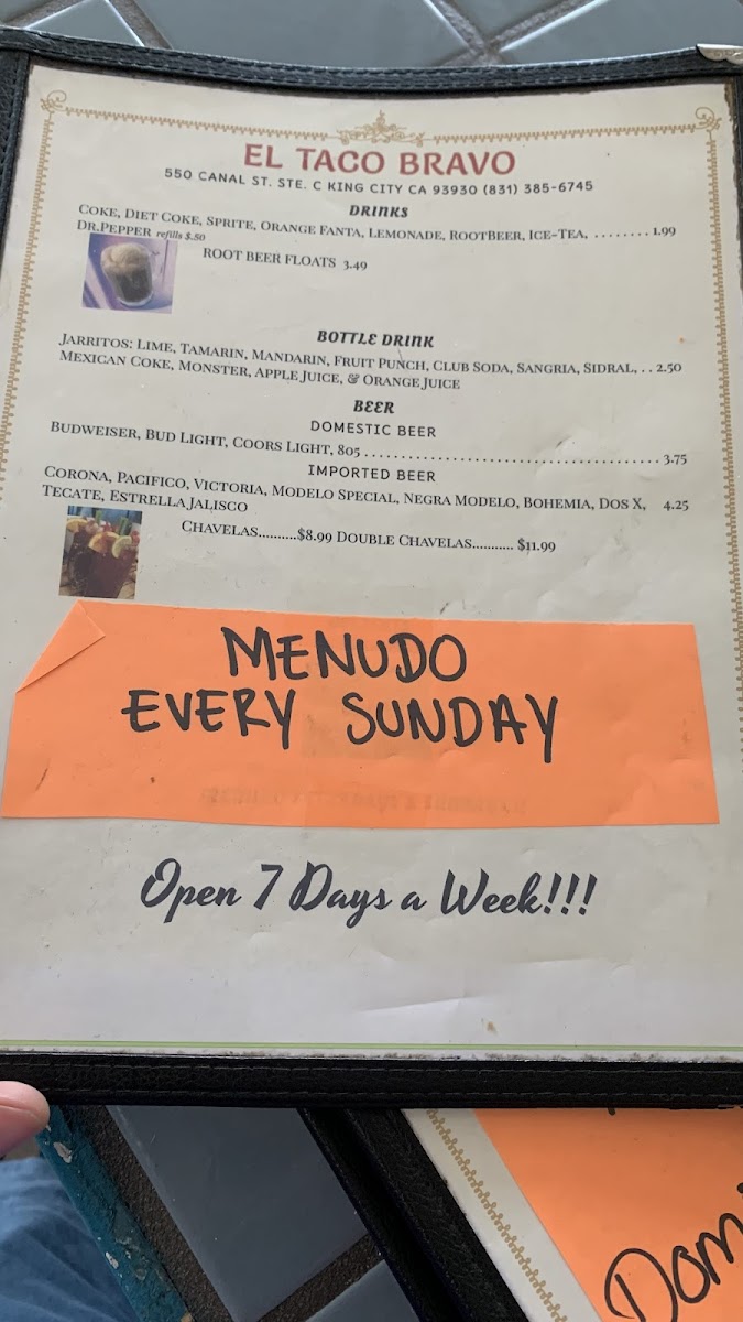 Located in King City, California, El Taco Bravo Restaurant serves up a vibrant blend of authentic Mexican flavors that will excite your palate. Diners rave about the carnitas and al pastor tacos, which are noted for their exceptional quality and rich, savory taste. Don't miss the deliciously crafted enchiladas and chile rellenos, both of which showcase the restaurant's commitment to flavor and freshness. Each meal is complemented by their incredible in-house salsa, which many find irresistible and perfect for those who appreciate a spicy kick.